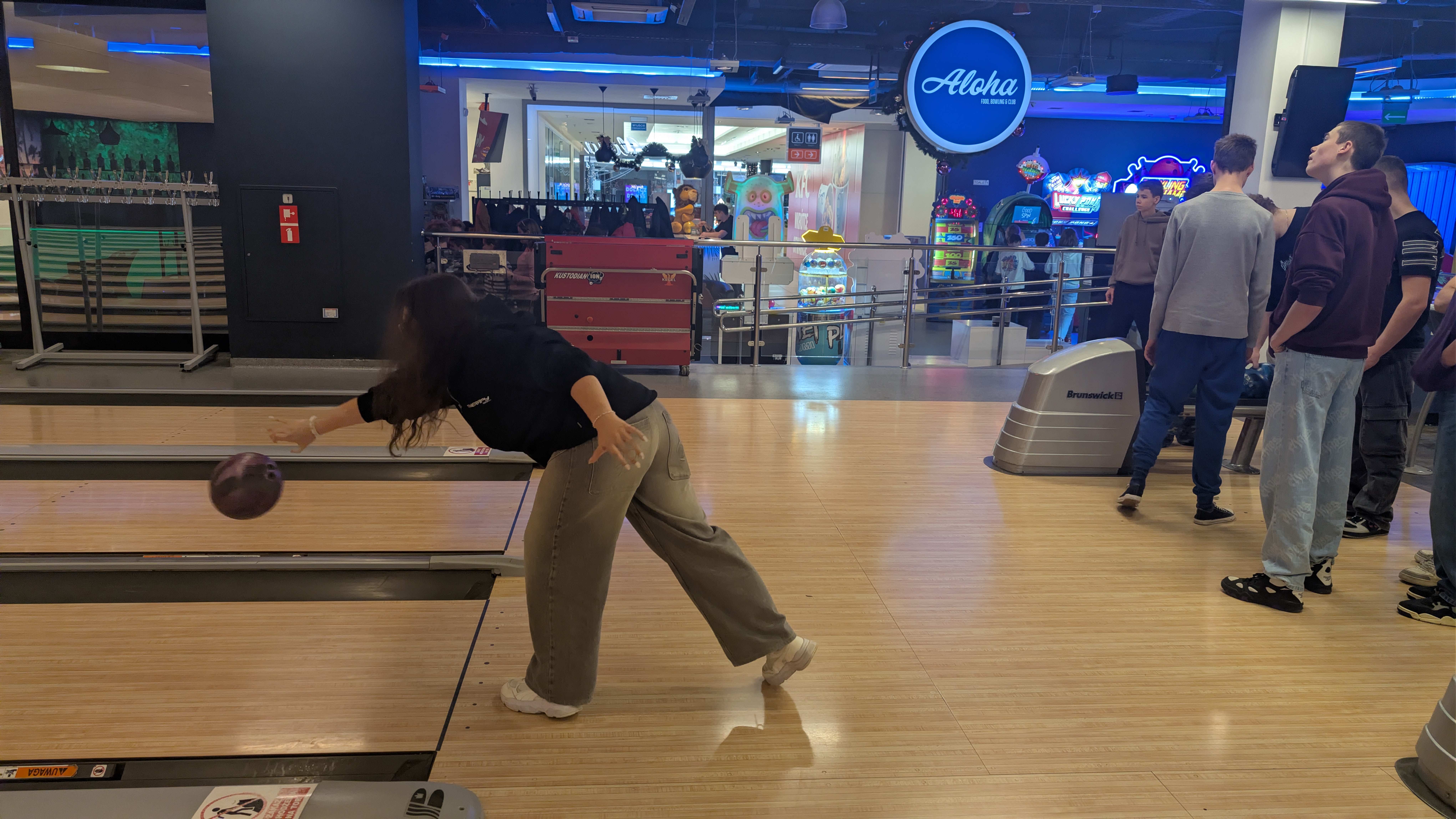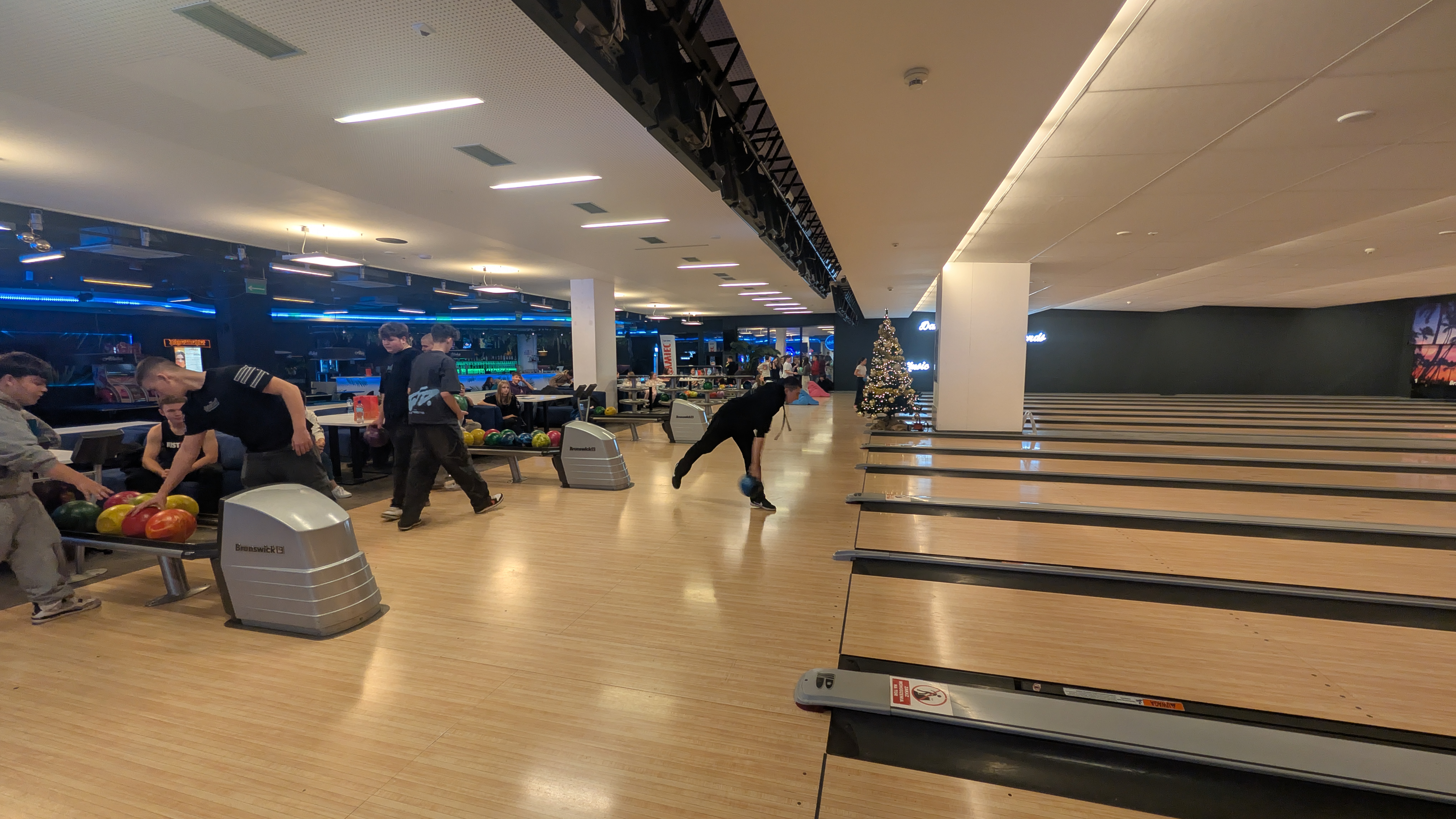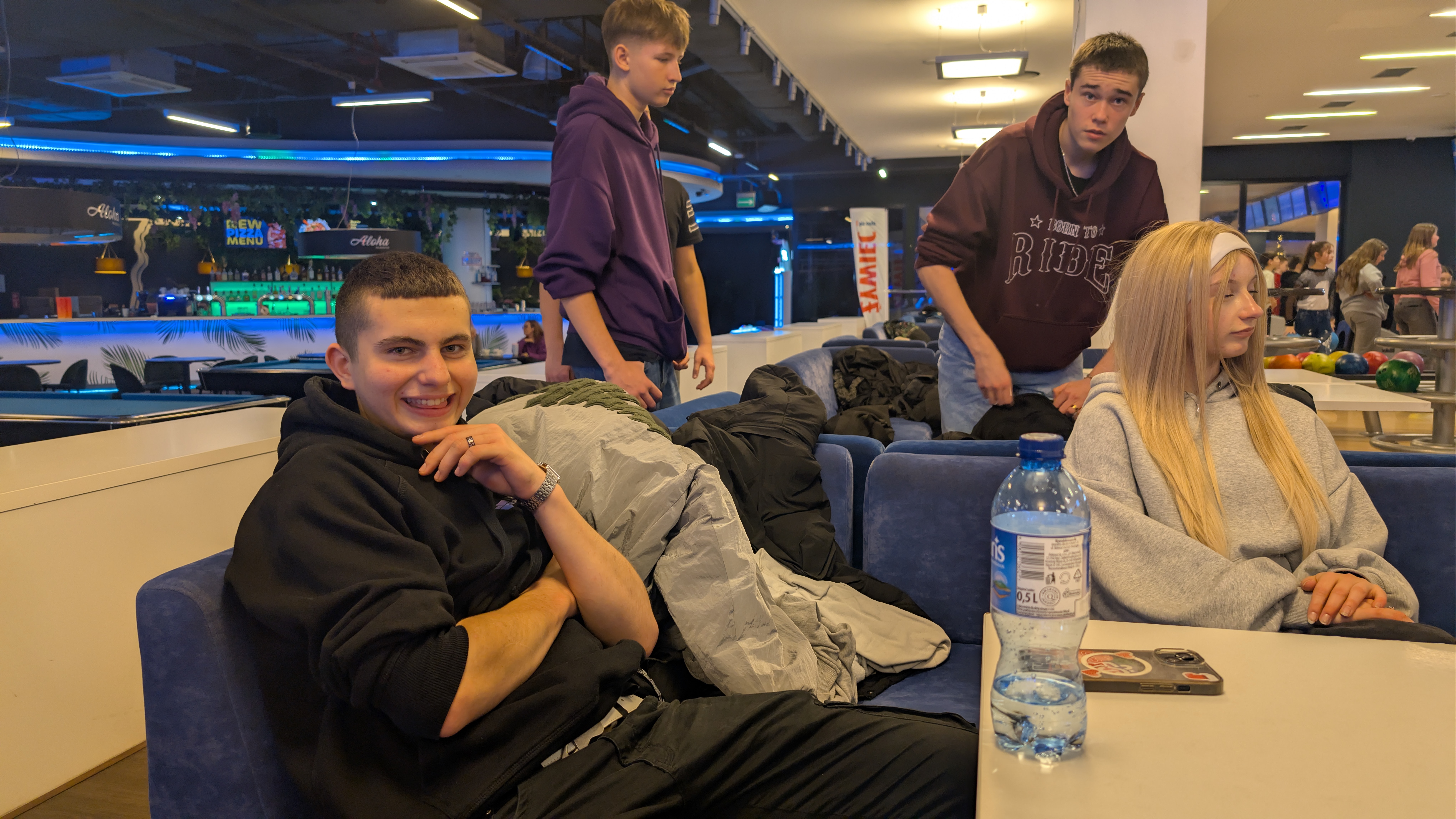 W kręgielni panowała pełna radości atmosfera. Uczniowie chętnie rywalizowali na torach, ćwicząc celność i współpracę w grupie. Zbijanie kręgli, zdobywanie punktów i zdrowe współzawodnictwo dostarczyły im wielu emocji i świetnej zabawy.
