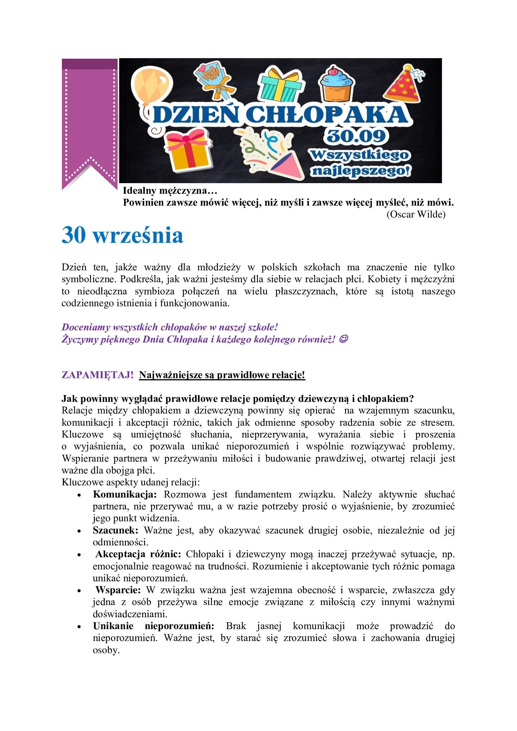 - Słuchaj- dla wielu dzieci i młodzieży problemem jest brak dorosłego, z którym mogą porozmawiać. Kogoś na tyle bliskiego, kogo darzy się naturalnym i pewnym zaufaniem.Osoby, która wysłucha bez oceniania, w bezpiecznej atmosferze.