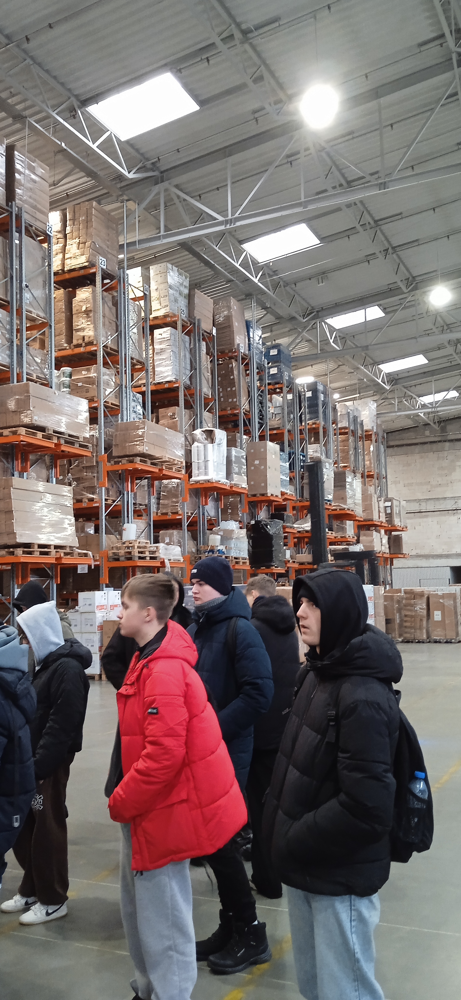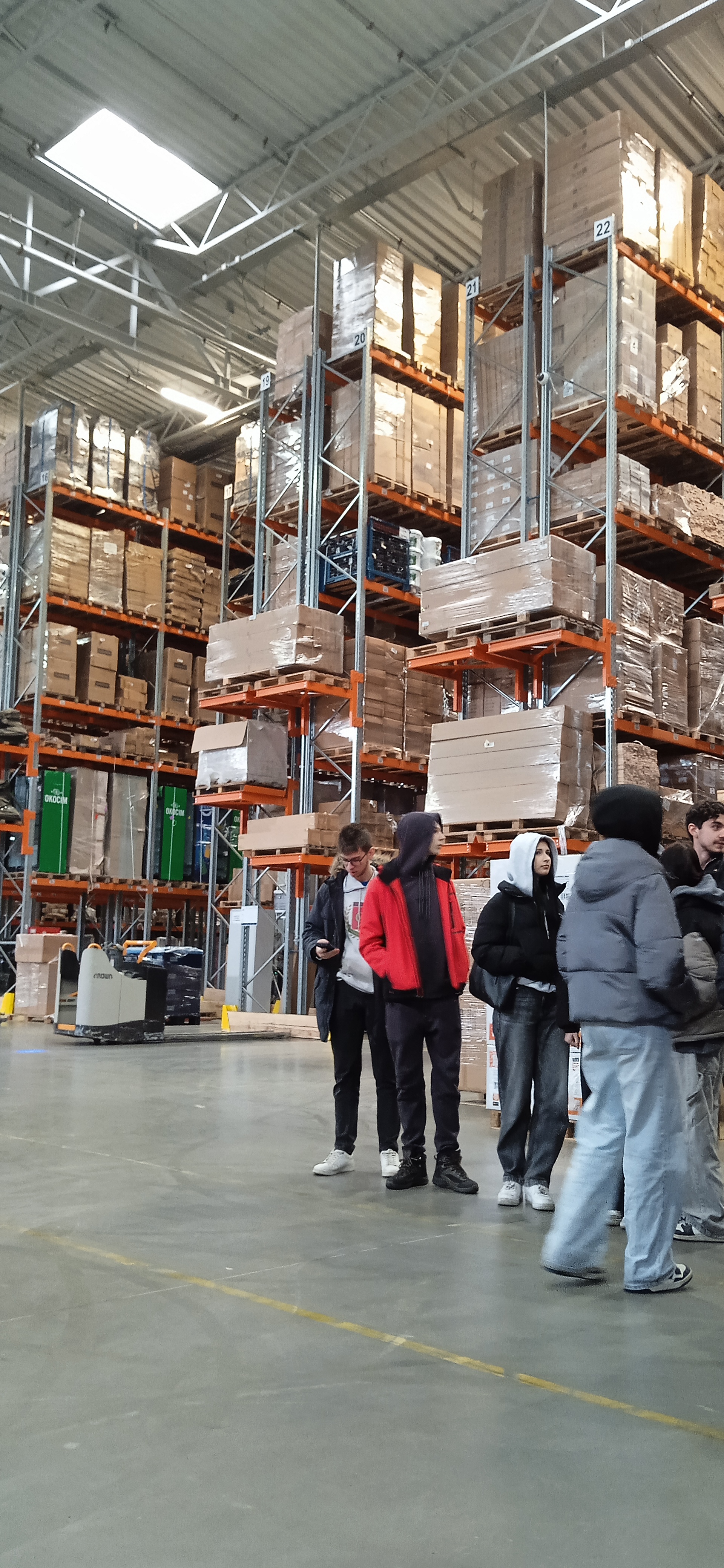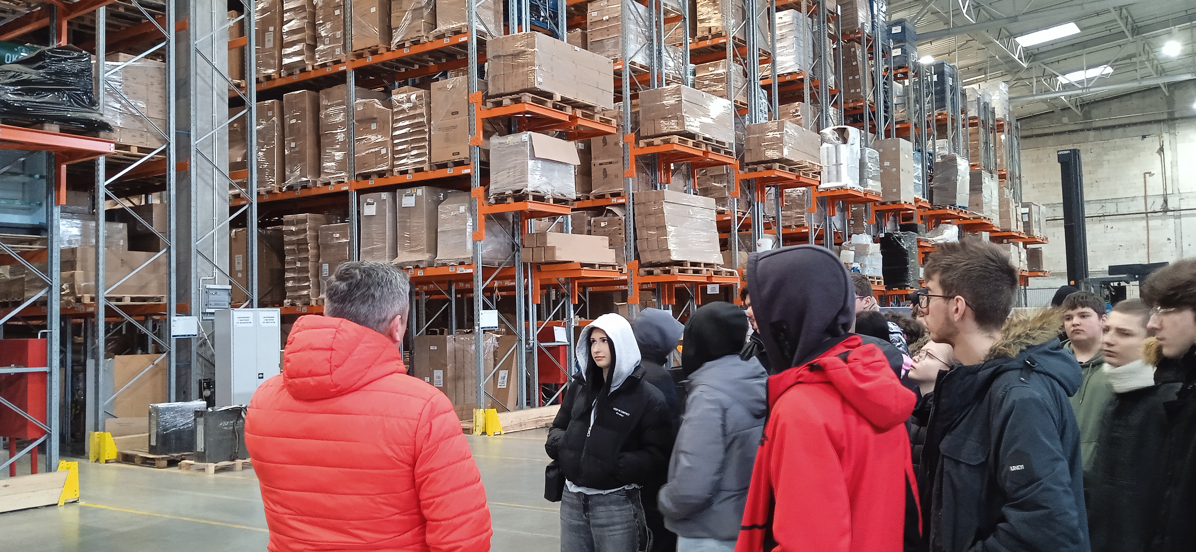 Uczniowie mogli zobaczyć jak funkcjonuje nowoczesny magazyn wysokiego składowania, dysponujący 50 000 tysiącami miejsc paletowych. Uczniowie uczestniczyli w obserwacji rozładunku kontenera morskiego, mogli zobaczyć, jak przebiega kompleksowa obsługa – od przyjęcia towaru, po magazynowanie i wysyłkę paletową do wybranego miejsca. Ponadto mieli możliwość zapoznać się ze środkami transportu wewnętrznego, ich specyfiką, parametrami. Wybrani uczniowie mogli razem z pracownikiem wjechać między regały i z perspektywy operatora zobaczyć, jak przebiega proces pobrania danej jednostki ładunkowej lub jej odłożenia.