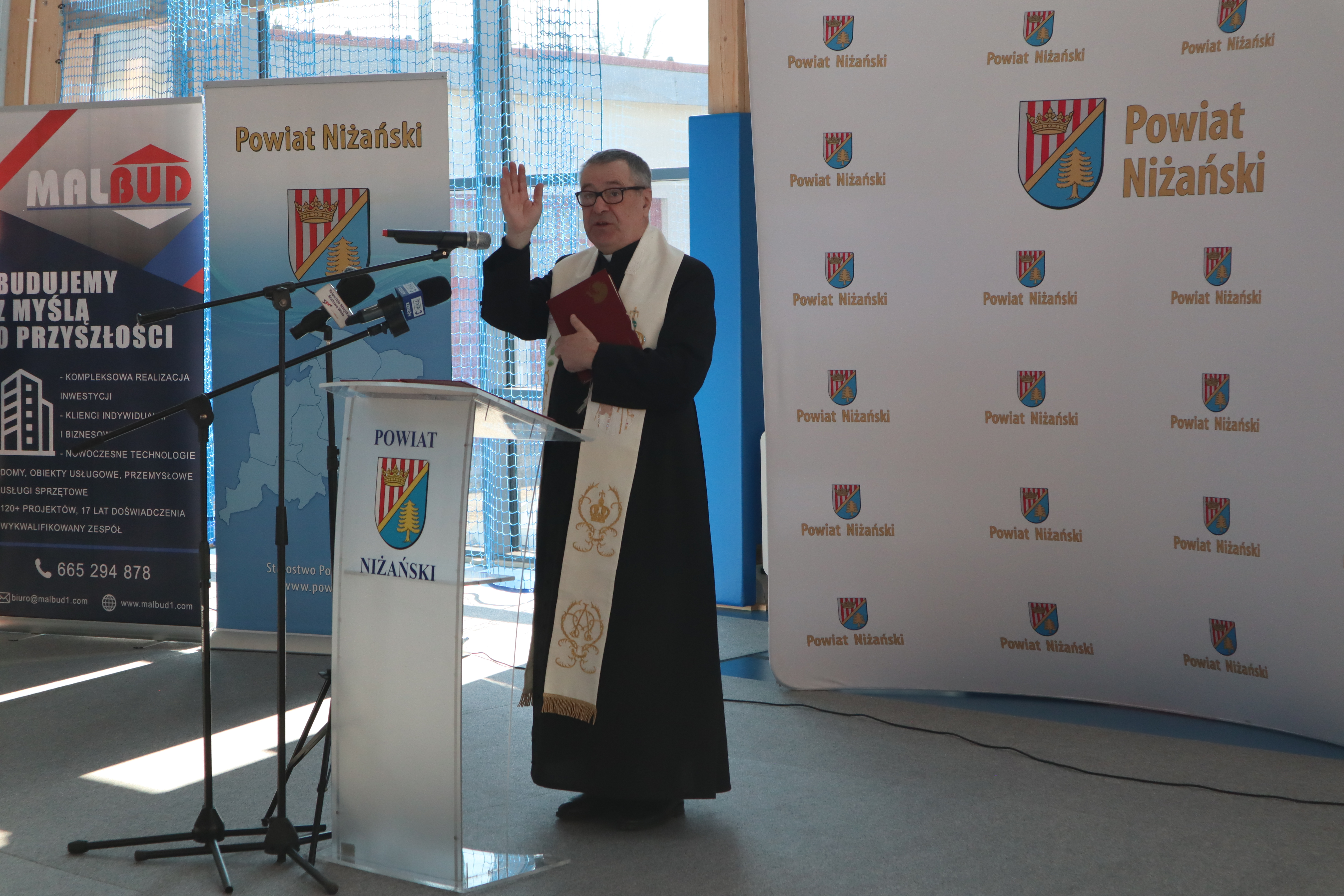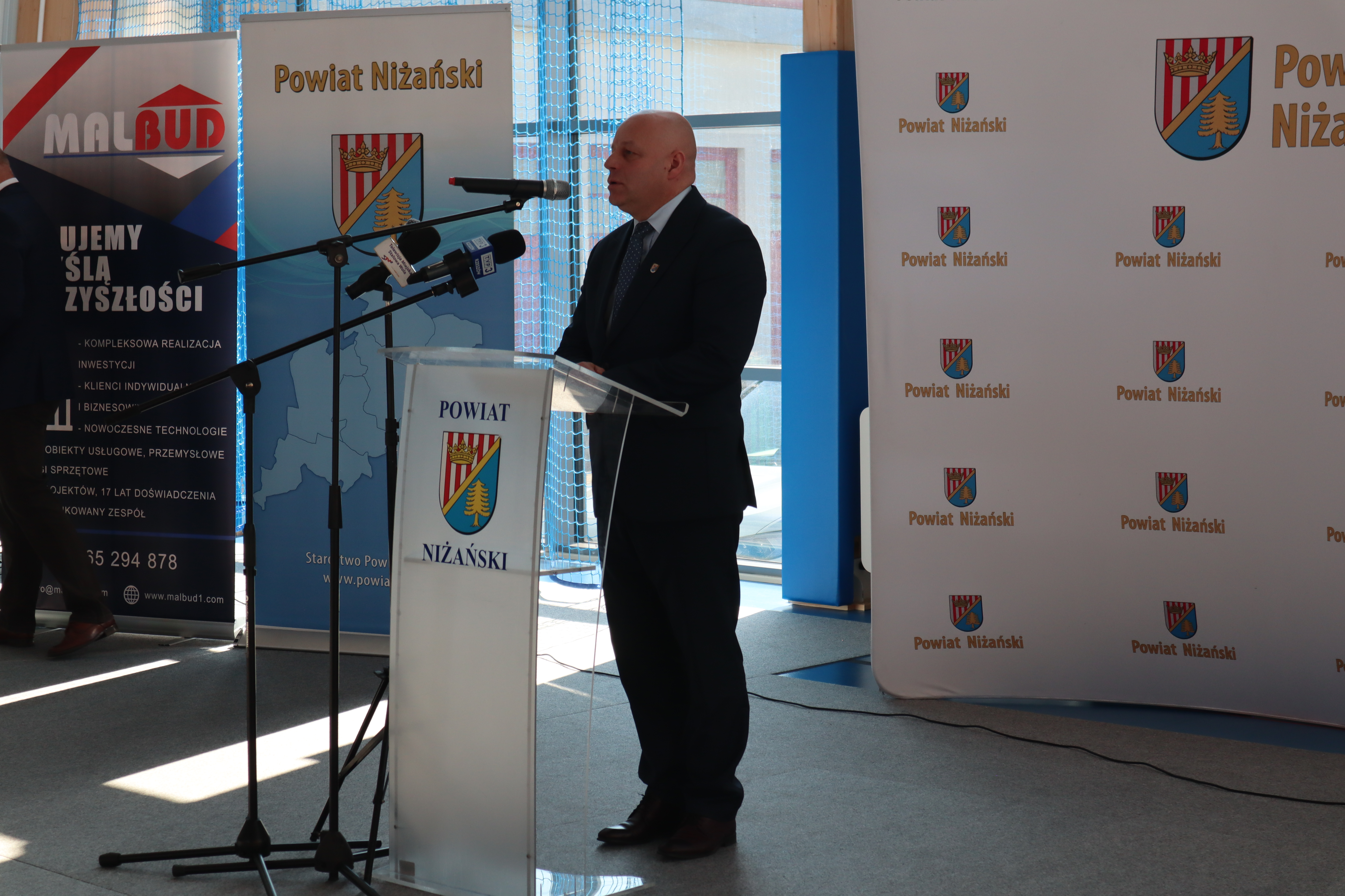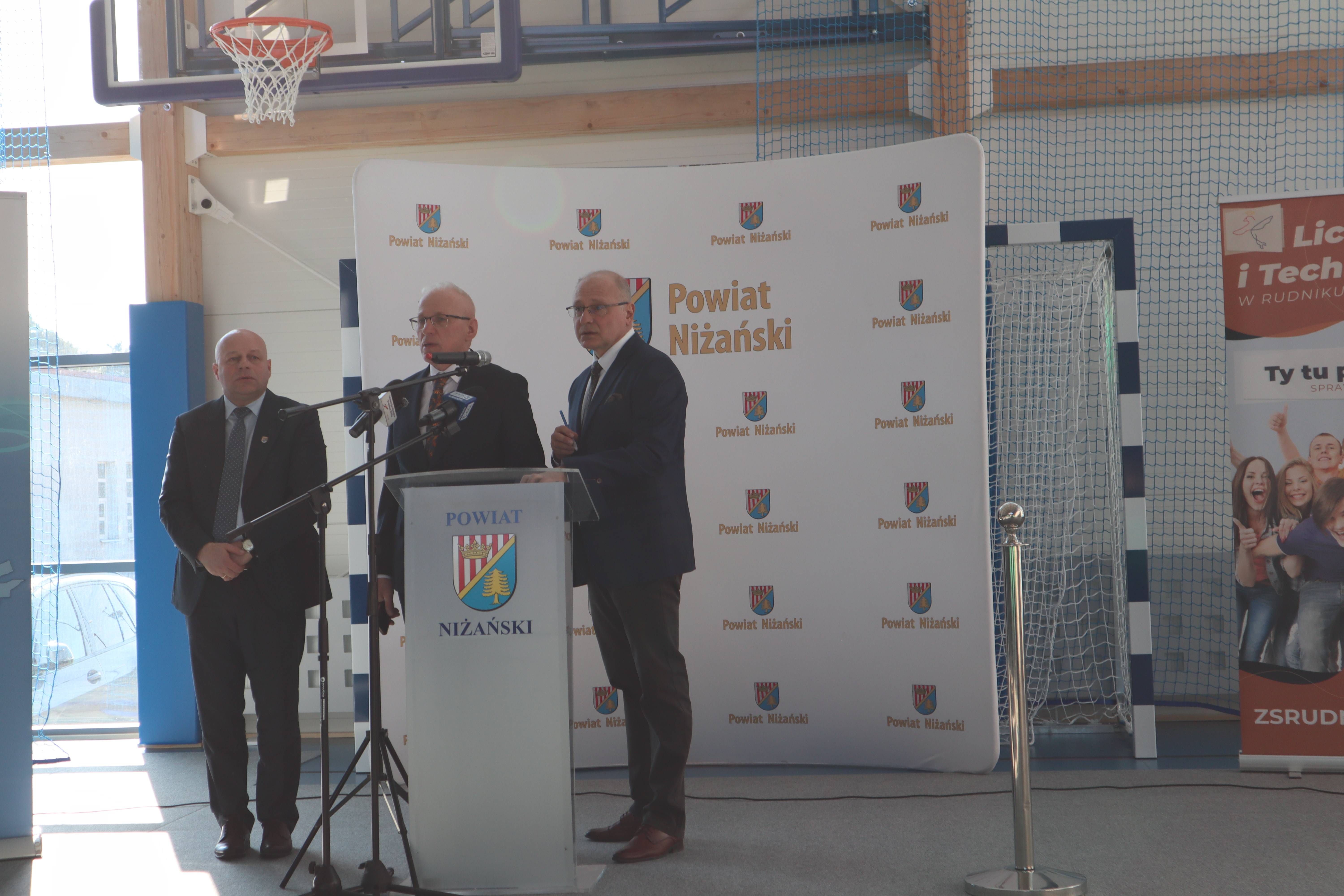 Złożył serdeczne podziękowania wszystkim, którzy przyczynili się do realizacji tej inwestycji: władzom samorządowym za wsparcie finansowe, wykonawcom za ciężką pracę oraz rodzicom, nauczycielom, pracownikom i uczniom za wsparcie i zrozumienie. Tu szczególne słowa uznania należą się dla Rady Powiatu Niżańskiego i Zarządu Powiatu na czele ze Starostą Niżańskim Panem Robertem Bednarzem, za podjęcie decyzji o budowie i współfinansowaniu inwestycji.