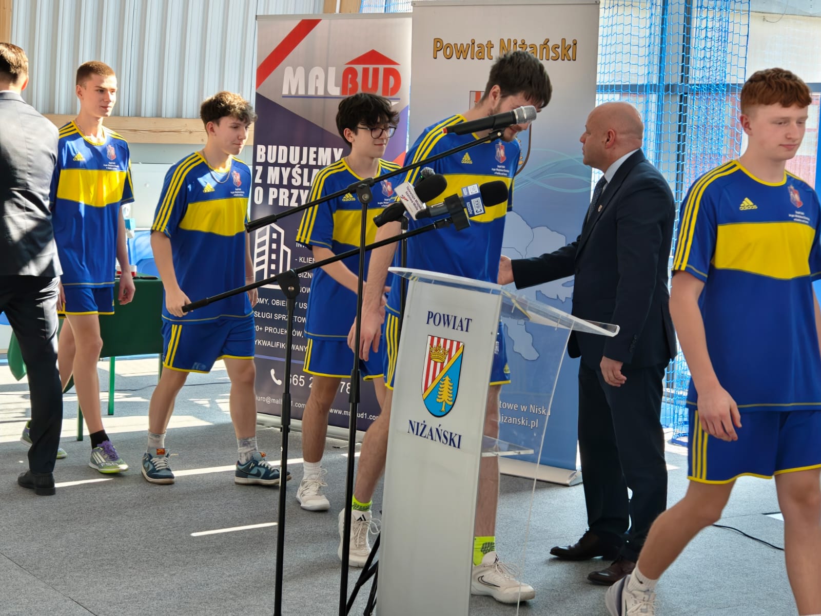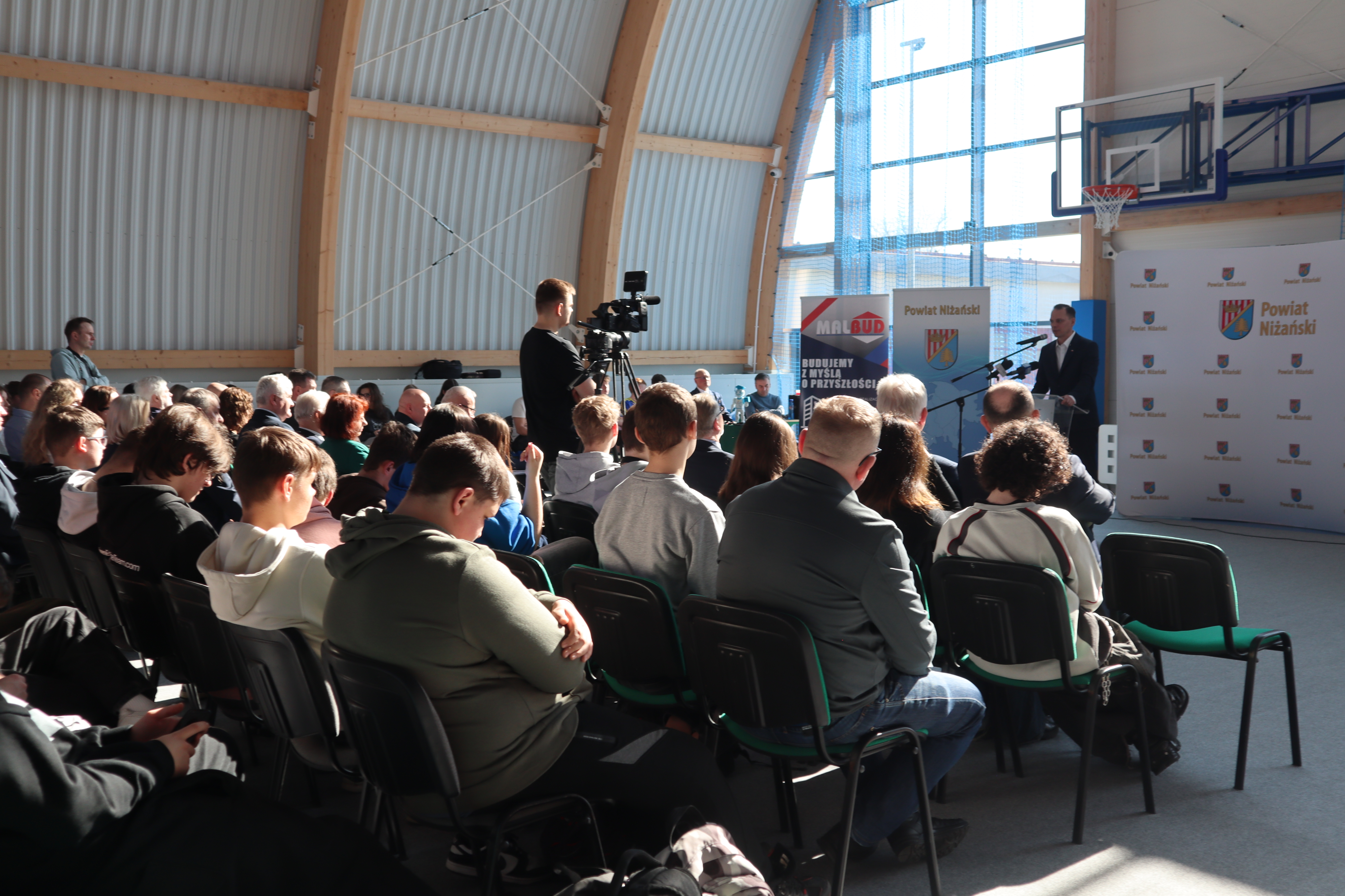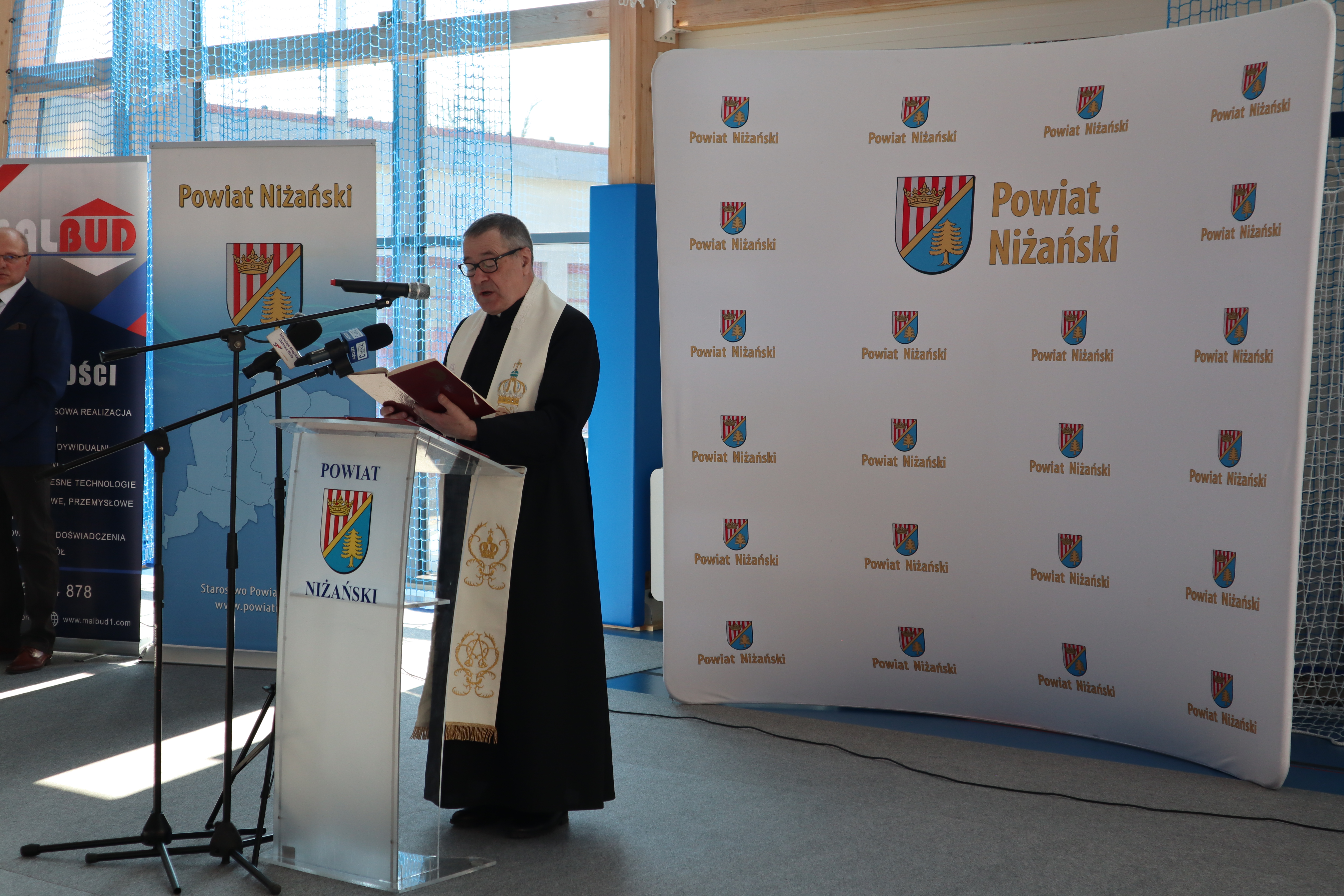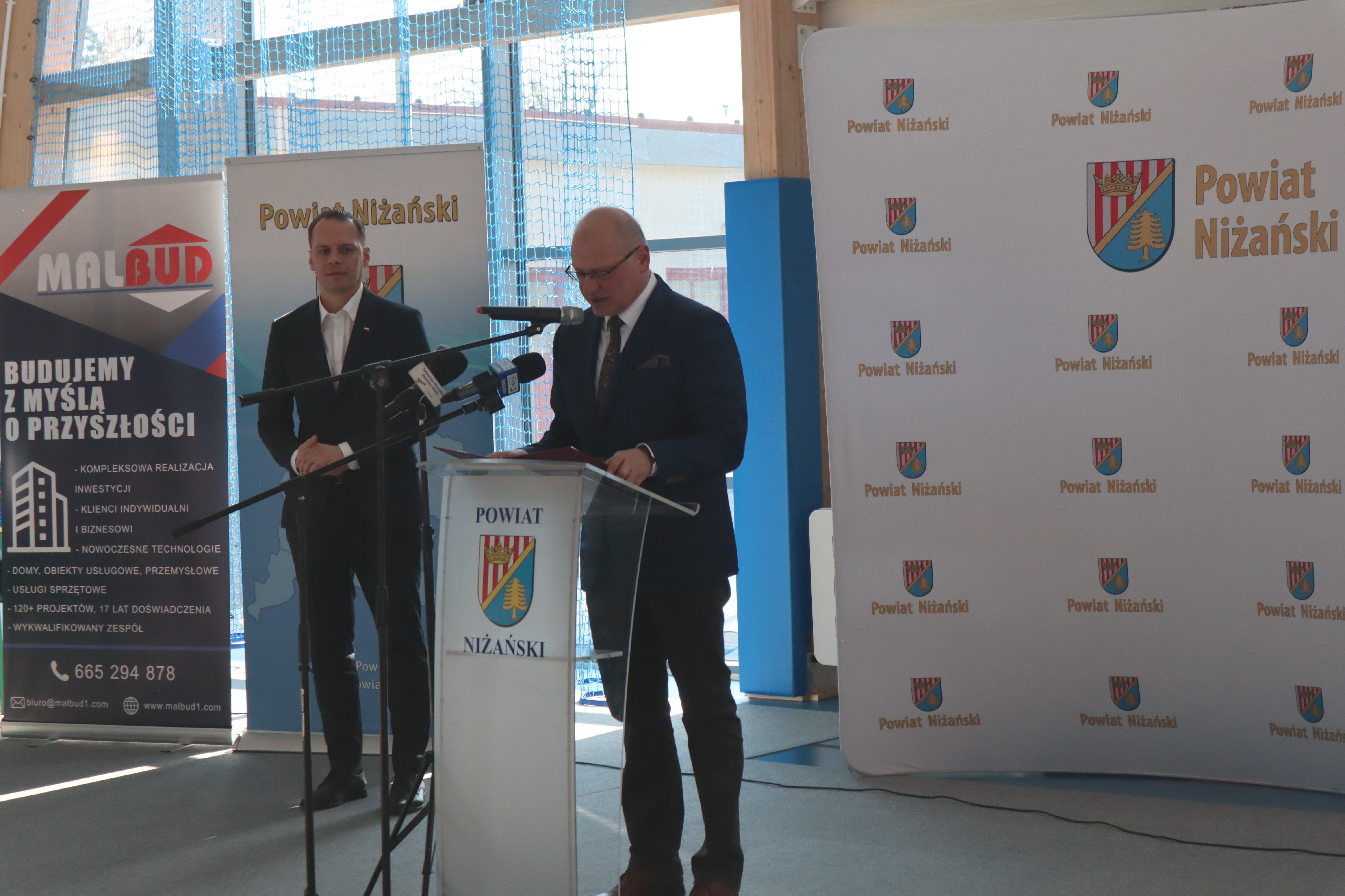 Złożył serdeczne podziękowania wszystkim, którzy przyczynili się do realizacji tej inwestycji: władzom samorządowym za wsparcie finansowe, wykonawcom za ciężką pracę oraz rodzicom, nauczycielom, pracownikom i uczniom za wsparcie i zrozumienie. Tu szczególne słowa uznania należą się dla Rady Powiatu Niżańskiego i Zarządu Powiatu na czele ze Starostą Niżańskim Panem Robertem Bednarzem, za podjęcie decyzji o budowie i współfinansowaniu inwestycji.
