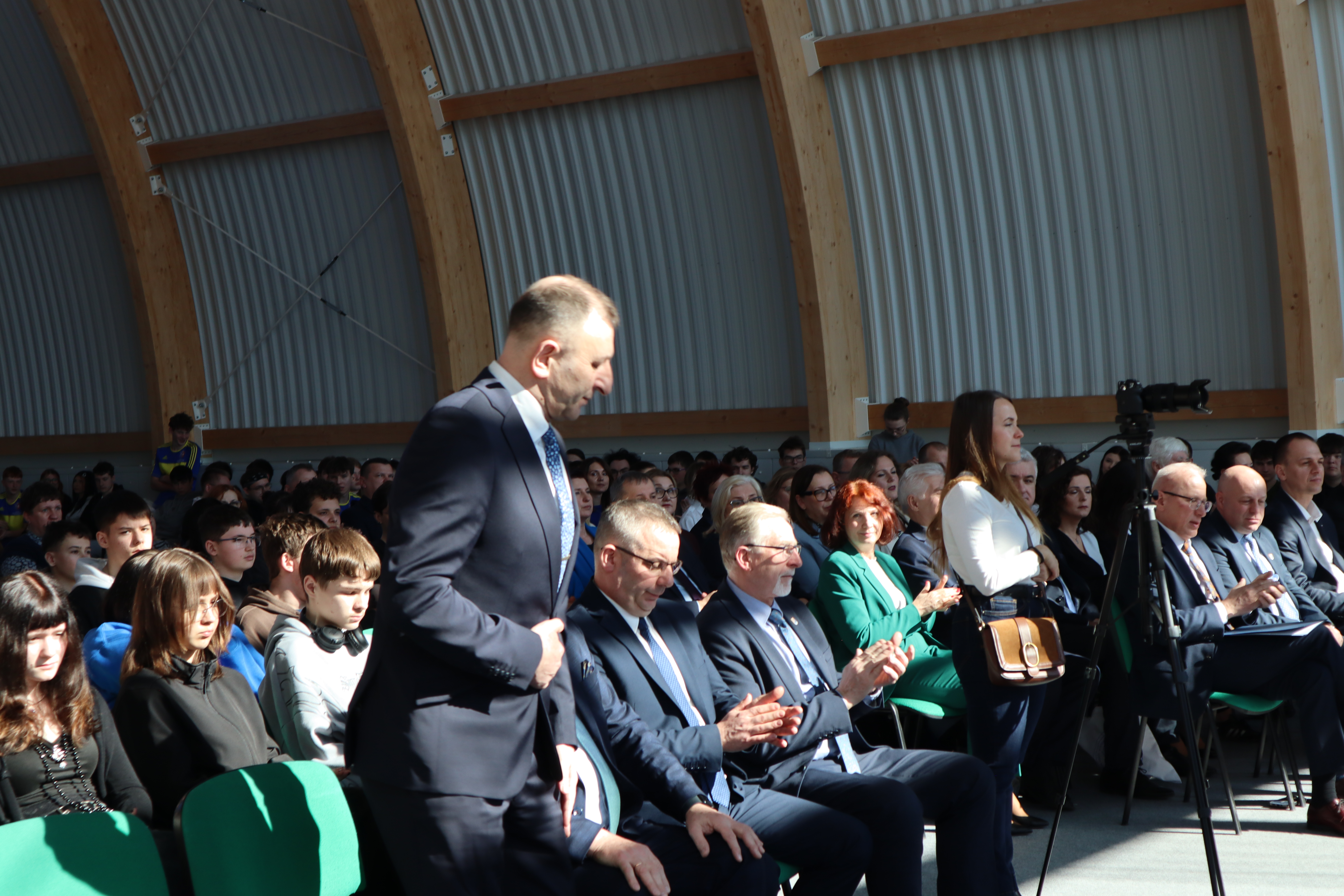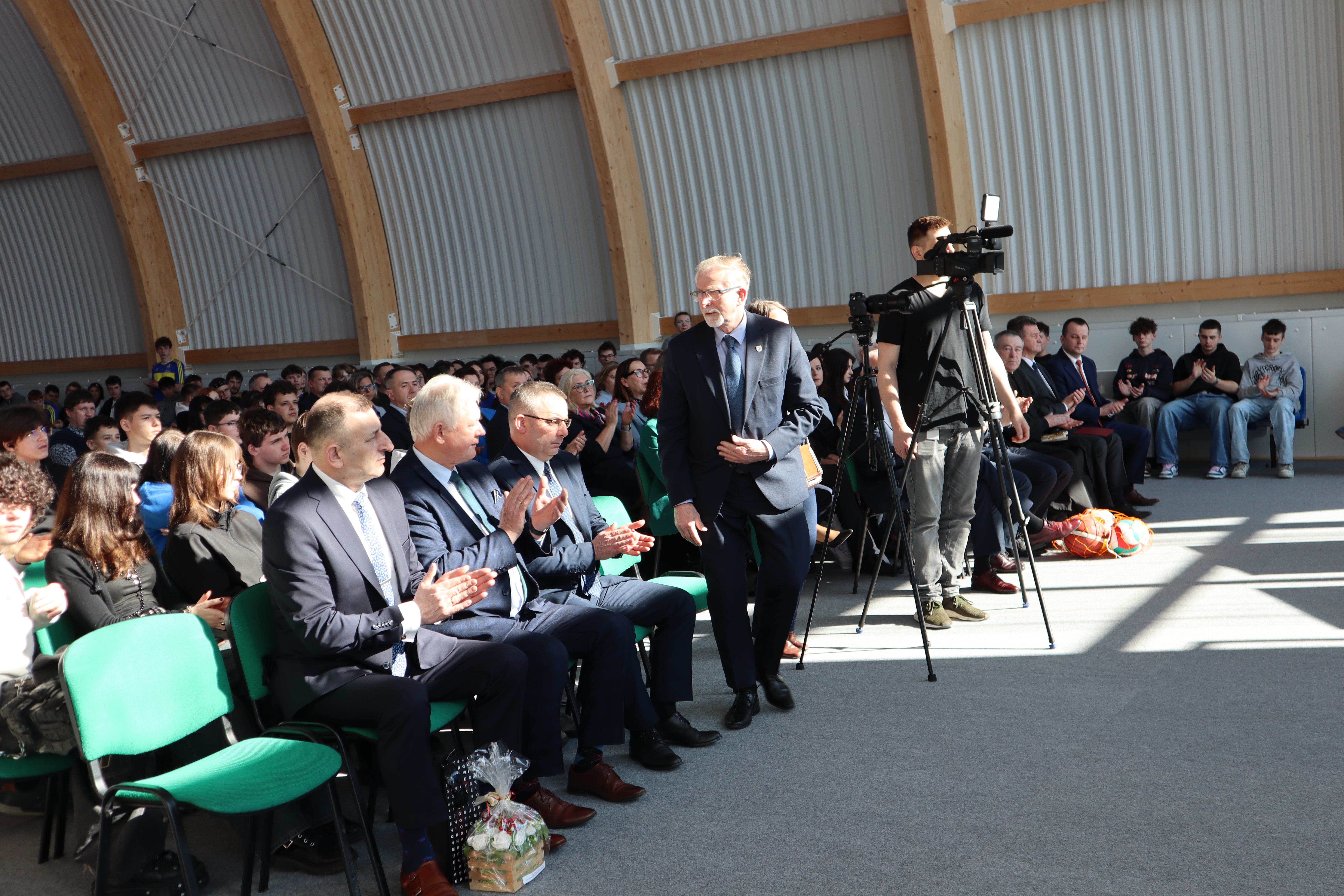 Dyrektor szkoły Edward Wołoszyn zauważył, że jest historyczna chwila dla społeczności szkolnej, ponieważ nowa hala zastępuje salę gimnastyczną, wykorzystywaną od 100 lat.